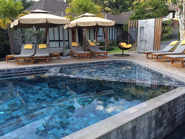 Un magnifique complexe de 8 villas dont 3 avec petite piscine privé, équipé de kitchenette avec réfrigérateur, plaque induction, micro-ondes et un coin salle à manger séparé.