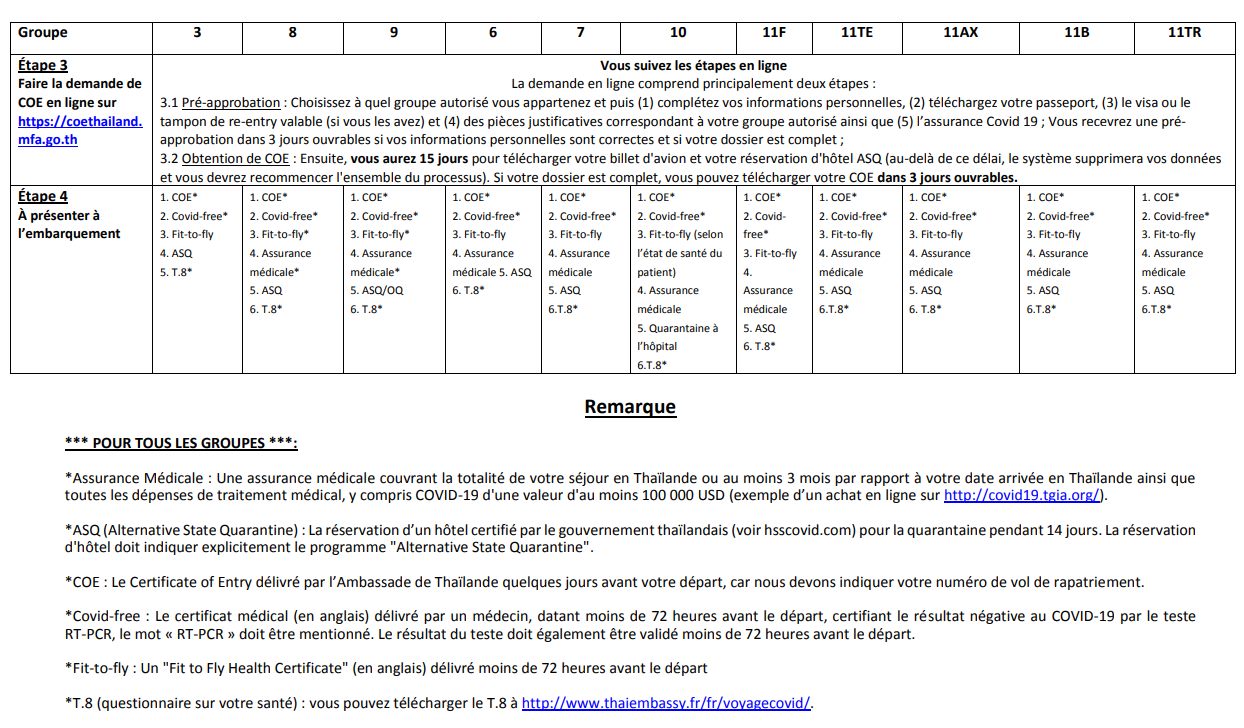 INFO DE L’AMBASSADE concernant les démarches pour se rendre en Thailande :