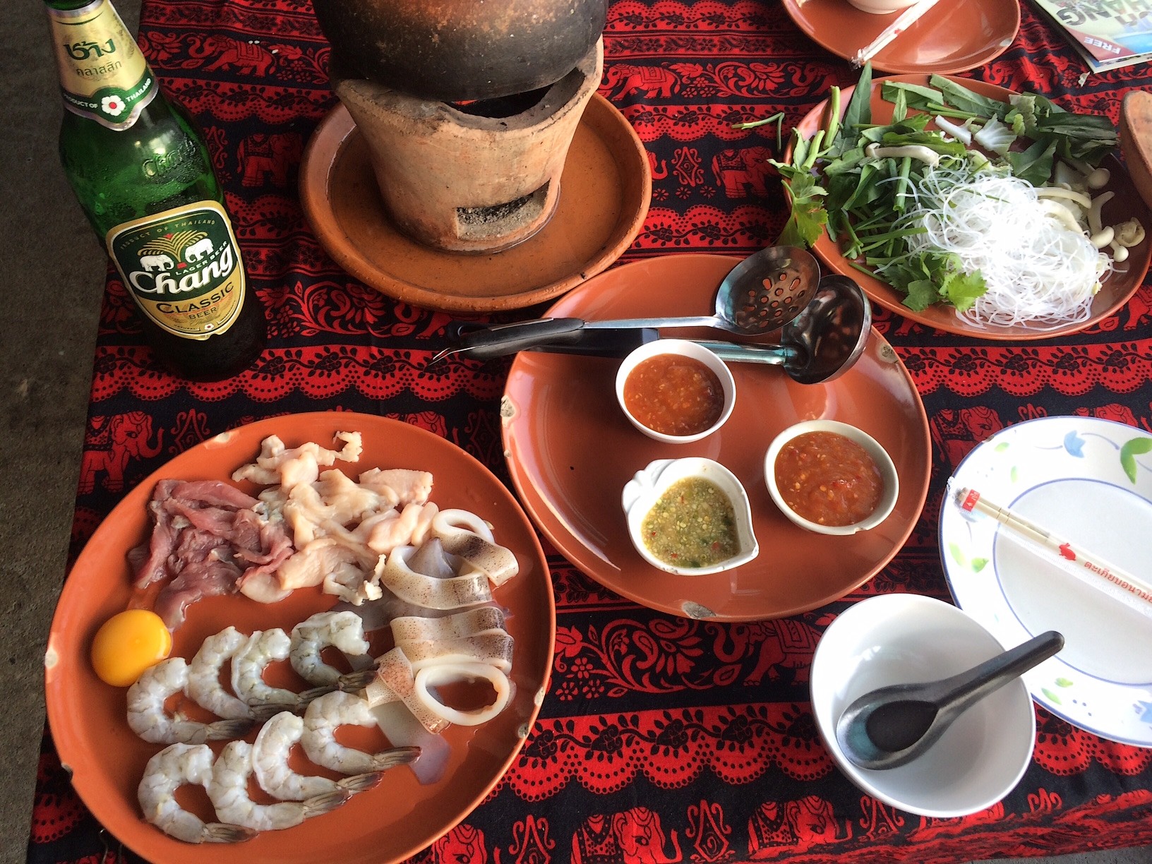 Jim-Jum ou « Hot Pot » est le nom du pot en terre avec le barbecue sur la table où sont cuits les légumes, le vermicelle et la viande. Une sorte de ragoût à la thaïlandaise.