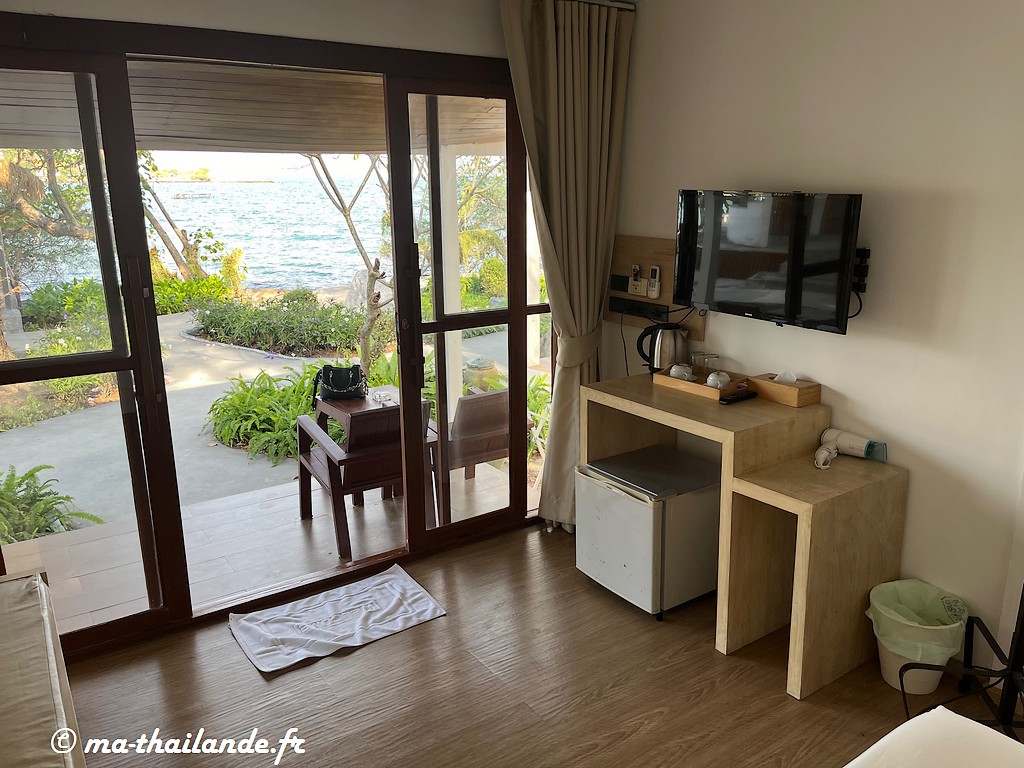 Le resort affiche des tarifs de chambres étonnamment élevés, un peu déçu lors de notre arrivée dans le resort à la vue du bungalow que l’on nous a présenté, nous avons payé un supplément pour bénéficier d’une chambre avec vue sur la mer.