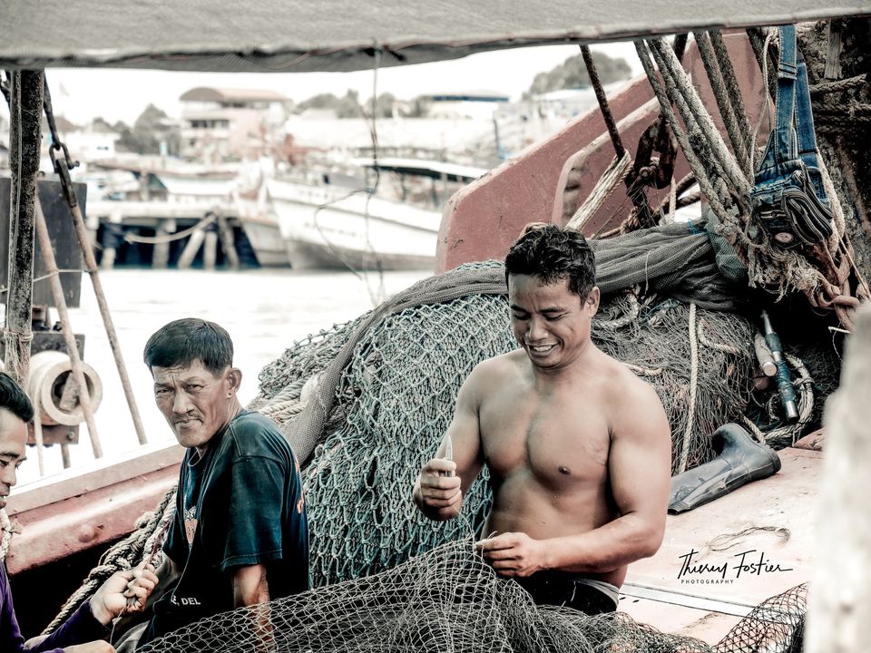 Les hommes de la mer dans le petit port de pêche de Ban Phe près de Rayong.
